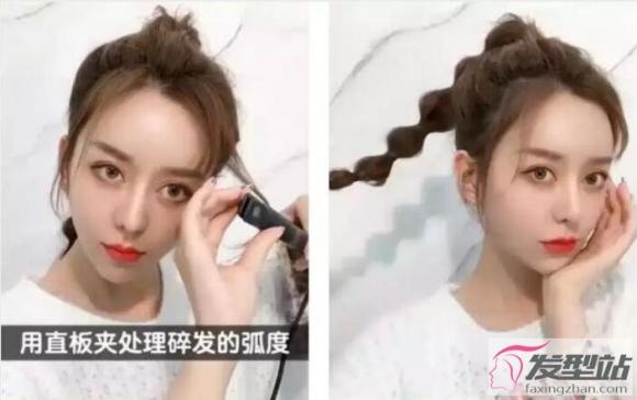 3.用直板夹处理碎发的弧度,灯笼辫就扎好了。