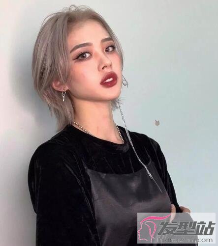 这款碎尾短发特别轻薄,发尾是外翘的设计,衬托得圆润的脸型瘦了一圈,搭配发色个性十足。