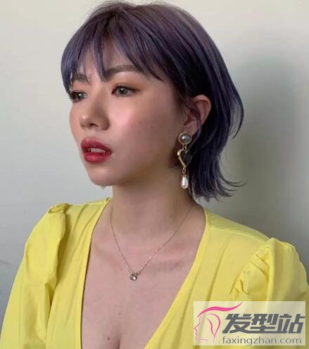 紫色系染发与众不同,展现出与众不同的个性,碎发丝散落在脸侧,搭配碎发尾洋气又有味道。