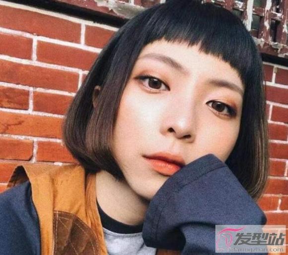 1.学生头。最典型的就是这款眉上短刘海内扣短发,只是将发尾扣卷,刘海拉直剪短。