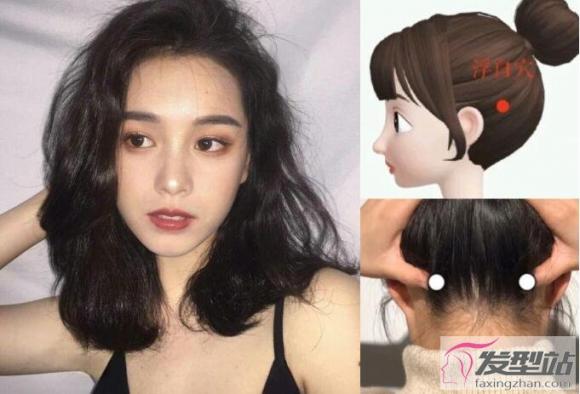 右图下: 脖子上方的的“风池穴”也能有效舒缓头部压力促进循环。