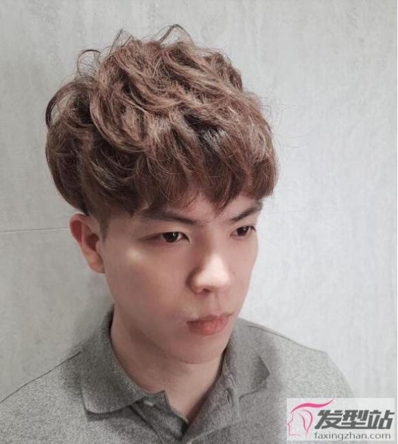 全头烫卷可以在视觉上增加发量的丰厚感,不规则刘海可以带出更多型男味,双鬓微长可将脸型拉长,最后加上焦糖棕色,感觉清爽又有型