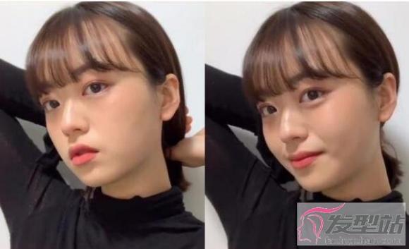 高额头的脸型当然就是要遮住额头,因为额头比较高的关系,娃娃刘海、一字刘海这种可以盖过额头的刘海就很适合,在视觉上露出脸的下半部位,也可以弱化上庭。