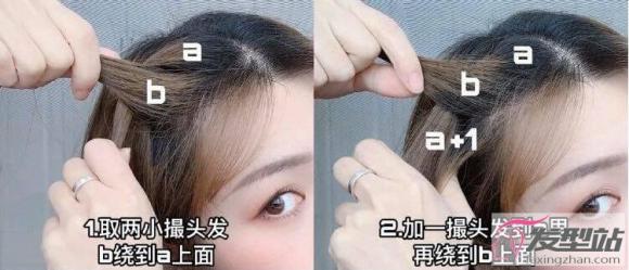 步骤1:先取两小撮头发b绕到按上面