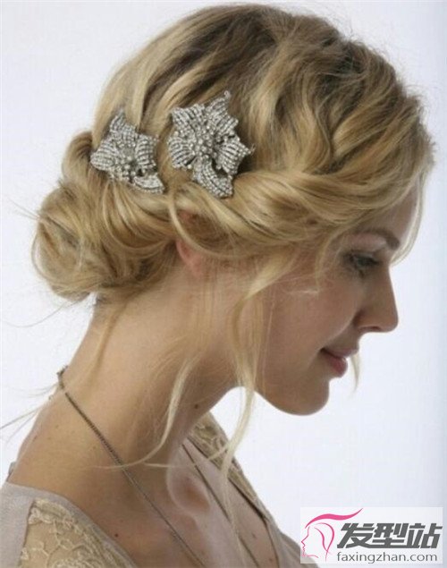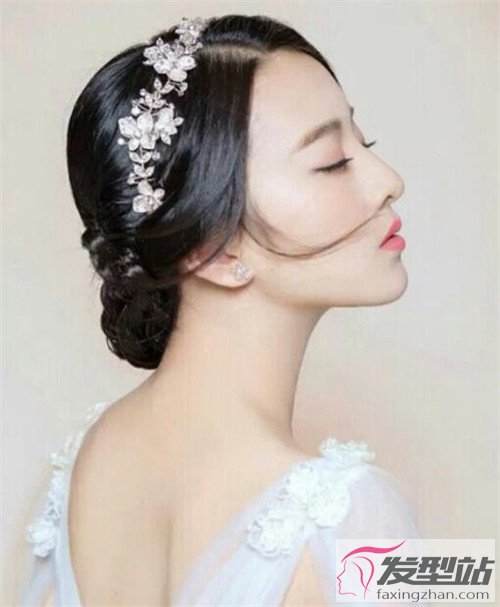 低盘发发型,加入可爱的发饰之后,原有的土气不复存在,取而代之的是那种淡雅的气质。