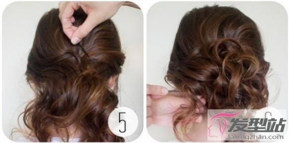 第六步:最后将一缕一缕带有卷度的发丝在花苞的位置固定住,打造出蓬松的造型感即可