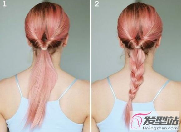 1:把头发扎成马尾,然后发尾后翻穿过