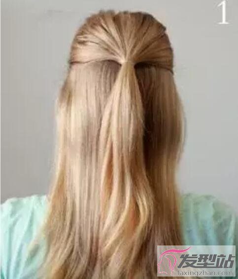 步骤1:准备一把梳子、橡皮筋、发夹,用梳子将女生的长发梳理整齐。从左右两侧取出同样的发量,在后脑勺处扎成公主头。