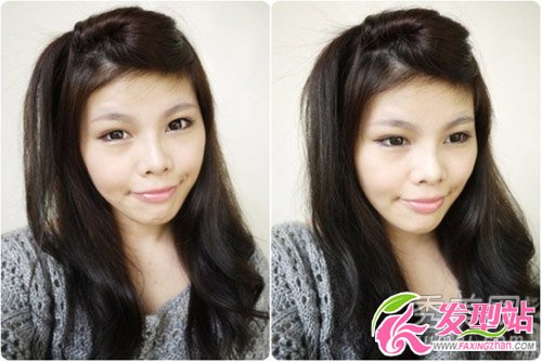 刘海澎澎的好可爱喔!!侧边的长发沿着尾端顺势落下,有点像小马尾,可爱度upup。