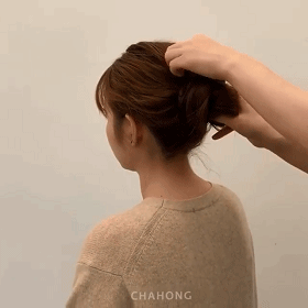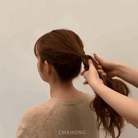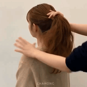 STEP1:绑一个马尾。小技巧在于,马尾最理想的高度是在两侧耳朵往后脑杓的水平线上,以避免太高发量不够,太低显老气!