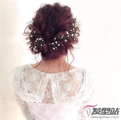 若是觉得盘发过于单调,可选水钻发饰或鲜花发饰点缀,浪漫优雅。