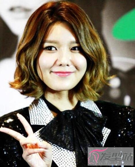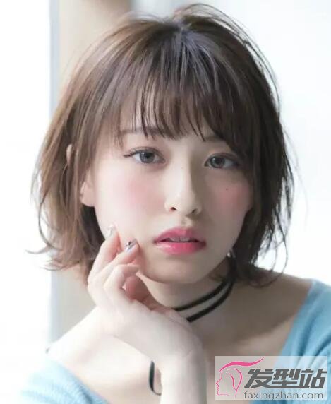 日系风格的短发,也很适合圆脸女生,头发修剪出层次感再烫卷,搭配刘海,让脸型瘦削了一整圈。