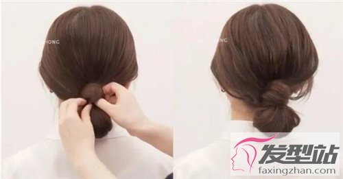 步骤4:用黑夹稍作固定,优雅气质的丸子头就扎好了!