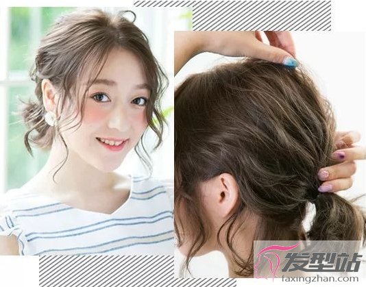 step 2:留出刘海发丝,其他的头发集中到后面扎成小马尾,用橡皮筋固定,在用手拉扯一下让头发变蓬,这样头型会更好看。(底层可以留少数发丝看起来更有气质。)