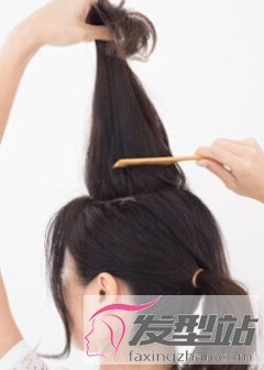 第三步:把夹住的头发用手抓住发尾,然后用梳子倒梳,打造出蓬松感
