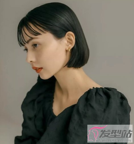 保留黑色的发色,顺直的短发,在校的学生党门也能剪,而且不管怎么搭配都好看哦。
