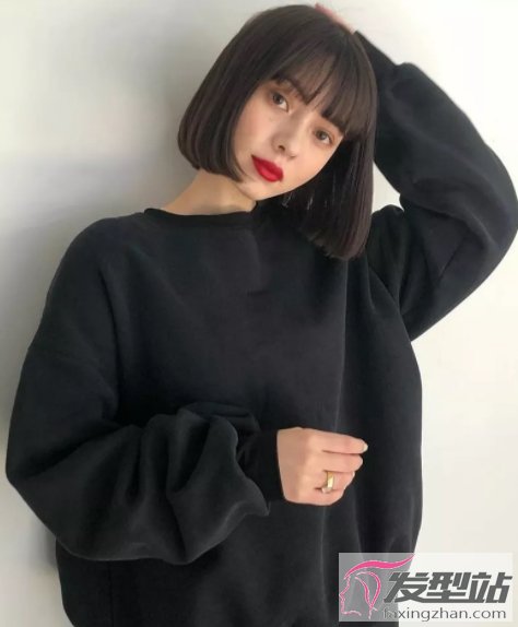 头发剪到齐下巴的长度,刘海同样一刀切的设计,这种发型今年非常流行,想剪短发的女生来试试看。