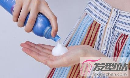 6.慕斯成就有弹性的发丝:挤适量的慕斯在手中,相较于腊状制造的发丝感,慕斯会更有弹性。