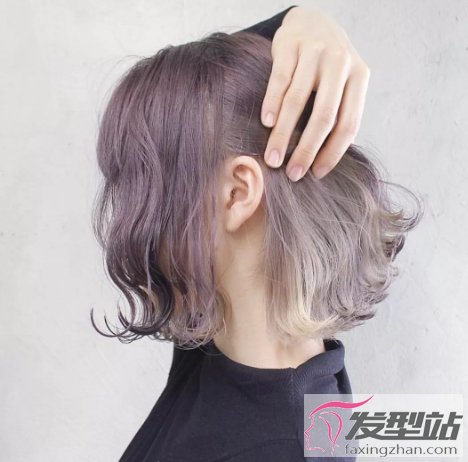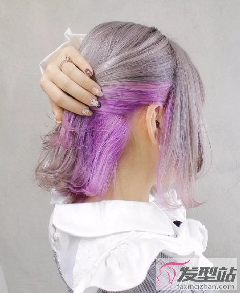 比起全头的紫棕色,在底层加入珍珠白的发色做一侧渐变处理,这样的发型更提气色哦。