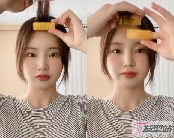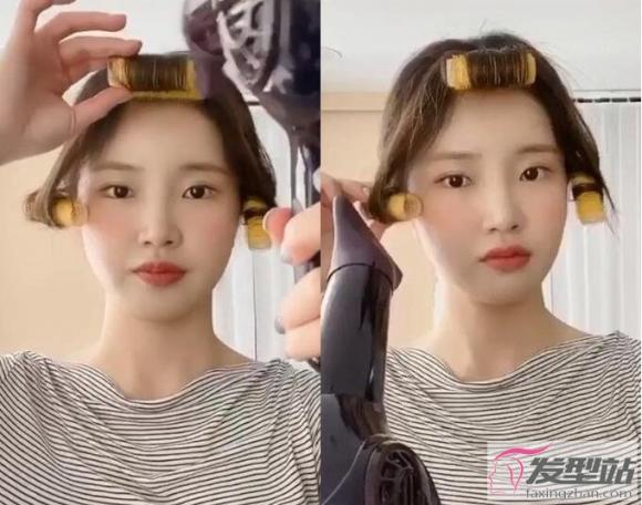 首先准备两个小号发卷,接着将发卷依序卷上额前刘海,在上卷的时候要注意发卷尽量紧贴发根,这样吹整过后刘海才不会有奇怪的折线~