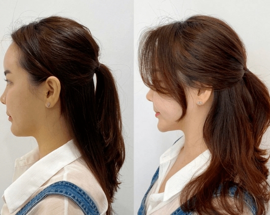 半扎马尾发型,头发少、扁塌、扁头,也能够让你轻松扎出蓬松感,修饰脸型和头型,这样的的半扎造型扎法还特别简单哦!