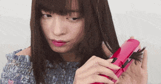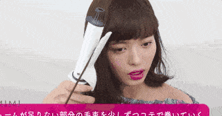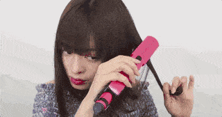 第一步:利用直发夹,从头发的中段开始向下拉直,到发尾时垂直上翘,先将发尾烫卷。