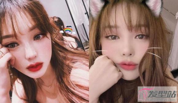 假如你的脸型比较阔、额又有点高,那么空气刘海就很适合你了。只需取出少许发丝,轻轻剪薄剪短,能够修饰你的脸型,并做到逆龄效果。不论是盘起头发,抑或少女感放下长发,都让五官更加突出和鲜明。就好像李圣经的刘海发型,有点随性,最重要是脸型立即变细了。