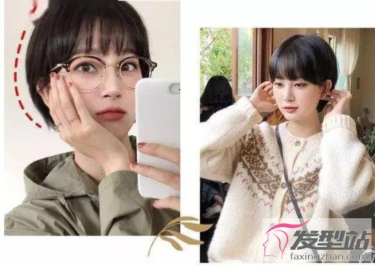 黑色的学生头短发,尽显小清新范,顺直的头发剪短即可,额头前剪一款空气刘海,百搭减龄又好驾驭,戴上眼镜超有范。