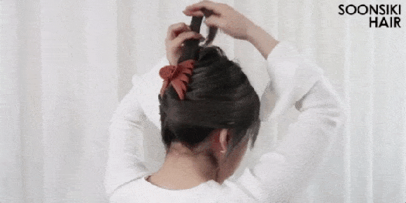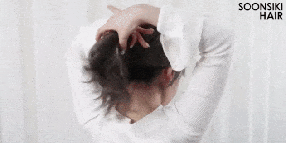 3、这样就会让一部分发尾俏皮地露出来,打造出自然轻微的凌乱感啦~