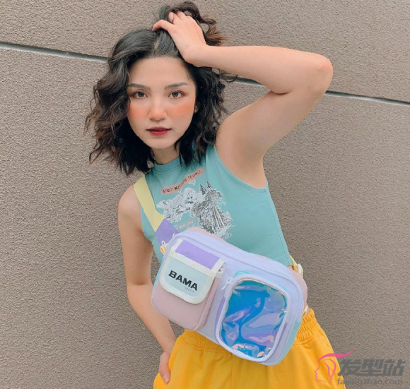 线条感水波纹短卷发,散发着温柔知性气息的发型,搭配运动风穿搭,竟然有几分帅气假小子的样子。
