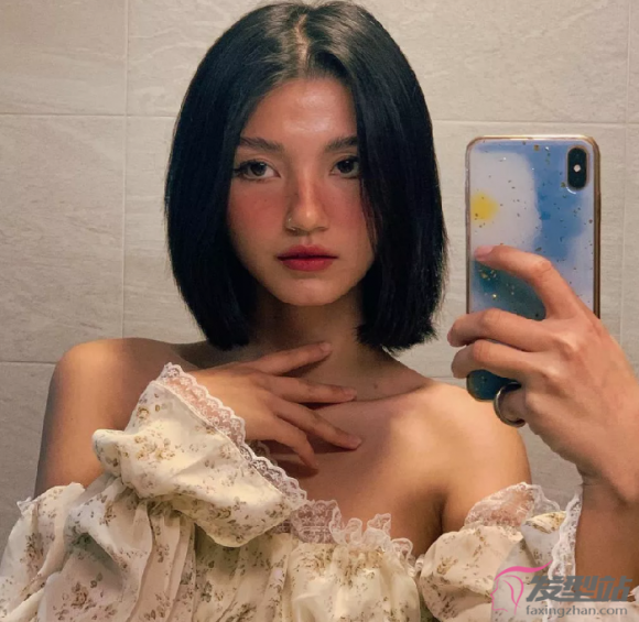 若是害怕上面的卷发都没有信心驾驭的女生,可以参考这款气质的齐脖内扣短发,简约自然好打理。