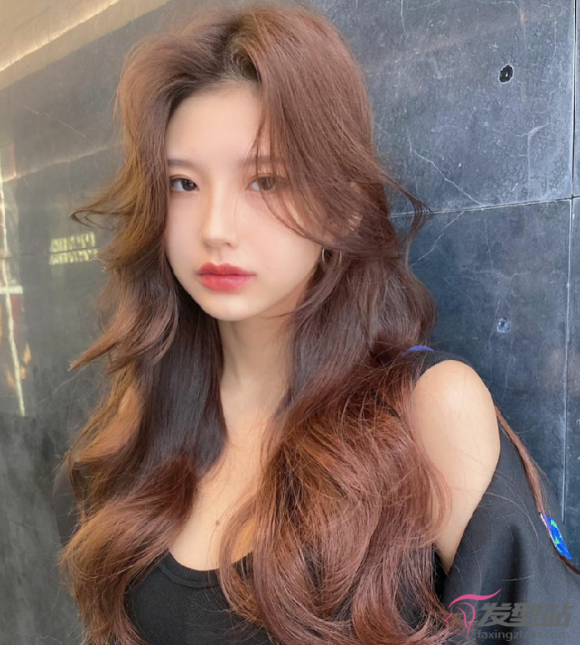 大波浪选择的发色非常重要,或亚麻色或茶色等,都是比较衬肤色的发色,显白显自然。