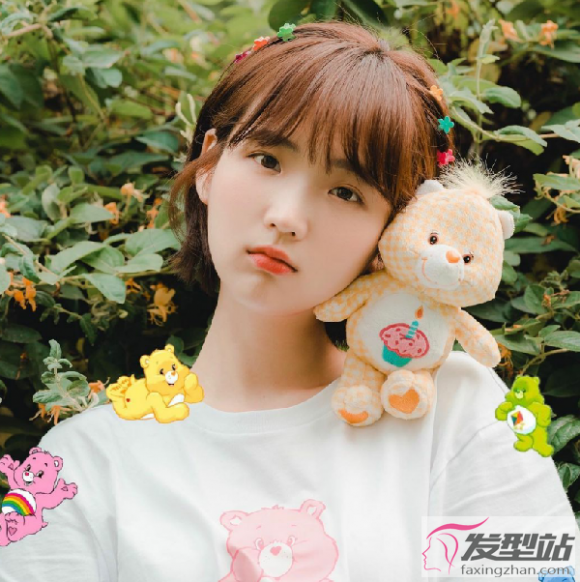 这样一款尽显清纯气质的短发,很受年轻女生的青睐,及脖的长度随时都可以扎起来。