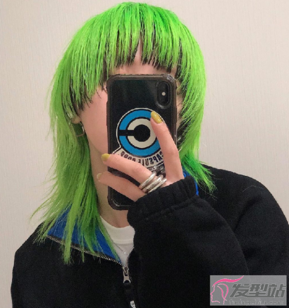 酷帅炸天的狼头发型,个性女生也能轻松驾驭。保留里层黑发,外层染上绿发,加上碎发感层次设计,颇有摇滚街拍风。