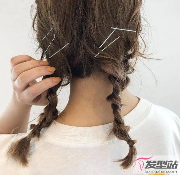 这一款非常具有森系风格的编发发型,采用的是两股编发的方式,然后用多个一字夹固定头发,很有小清新的气质。