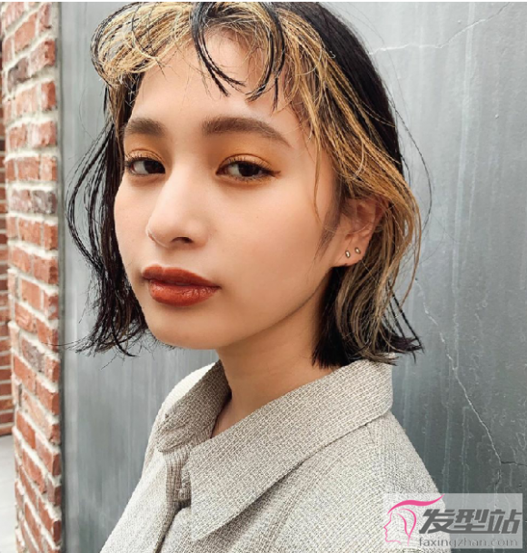 刘海染和挂耳染的结合,双重时尚强强联合,本就上镜的发型就变得更亮眼吸睛了。