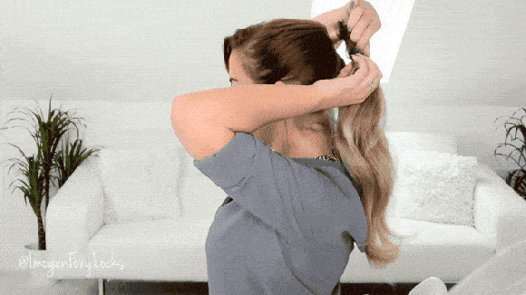 1、先扎好一个蓬松的马尾,每隔三四厘米的位置绑一个橡皮筋,具体可以根据个人的头发长短来调整。