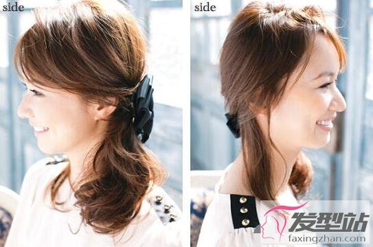 3、最后将发束向左侧扭转,再用发夹固定即可。