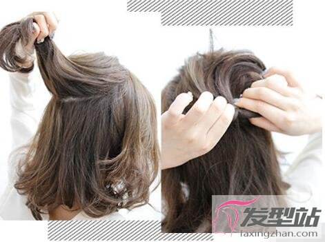 1、从头顶上取下一部分头发,用发圈把它扎起来。小心不要绑得太紧。应该绑在离发根大约4厘米的地方。用手指穿过头发,在头发中间形成一个空的间隙,让扎好的发束穿过这个空的间隙。