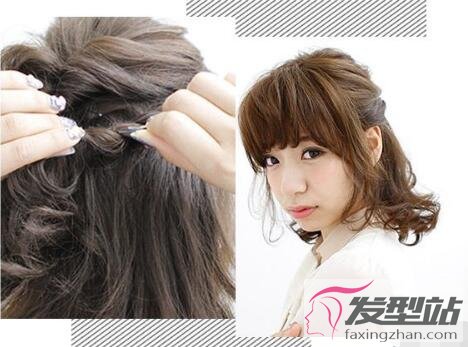 3、将扭曲的发束固定在背部左右两侧。最好用更多的发夹来固定头发。一个漂亮的发型就要完成了。
