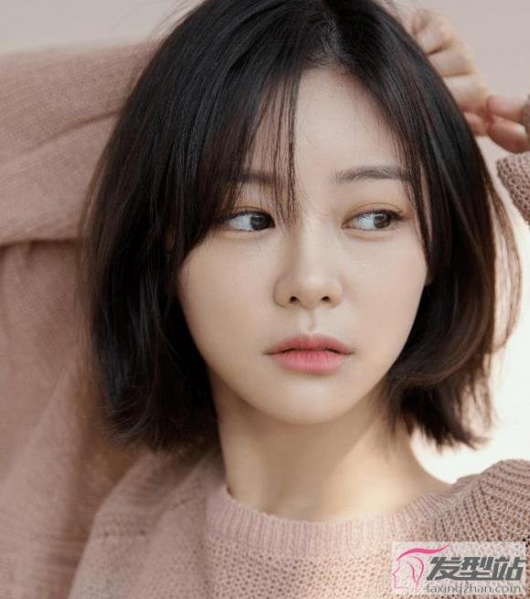 头发剪到下巴附近位置,随意披散下来,尽可能让发型展现出轻盈灵动感,十足的减龄效果。