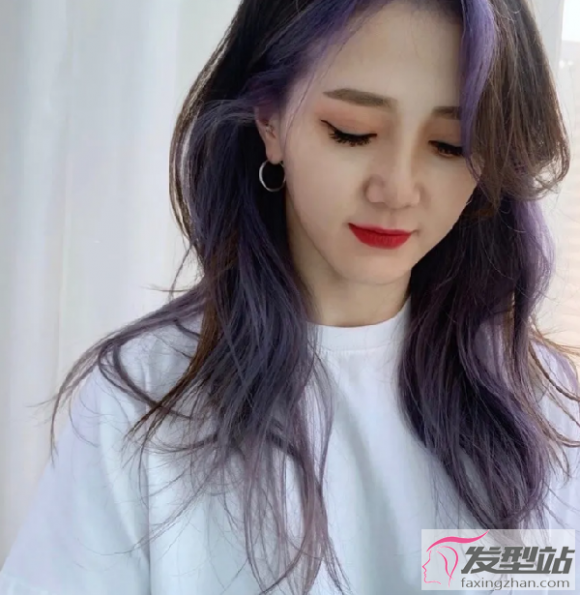 紫色系的渐变染发,使得整个发色更加突出,刘海的一束发色让你整个人显得耀眼无比。