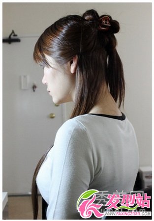 step1:先把头发以2:1分成上下两区,先把头顶的头发夹起备用。