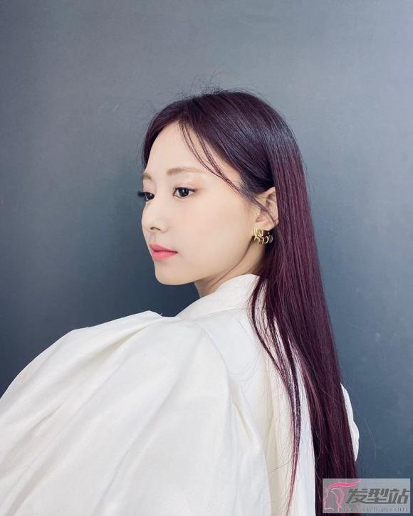 对发色选择相对保守的女孩们,也可以参考子瑜最爱的“高奢珊瑚紫”!不难发现,只要大势女团Twice成员们染过的发色必然成为时下趋势!而身为团宠的子瑜染过的“高奢珊瑚紫”,也再度成为2021韩妞必染色!极为魅力的深紫色与红棕色相互调配下,不仅格外奢华外,还超适合亚洲人肤色~就连肤色较健康的子瑜染后也超显白,推荐给想要低调中求变化的女孩们~