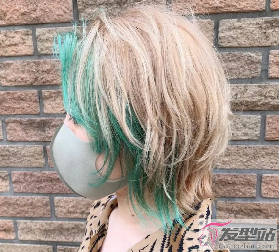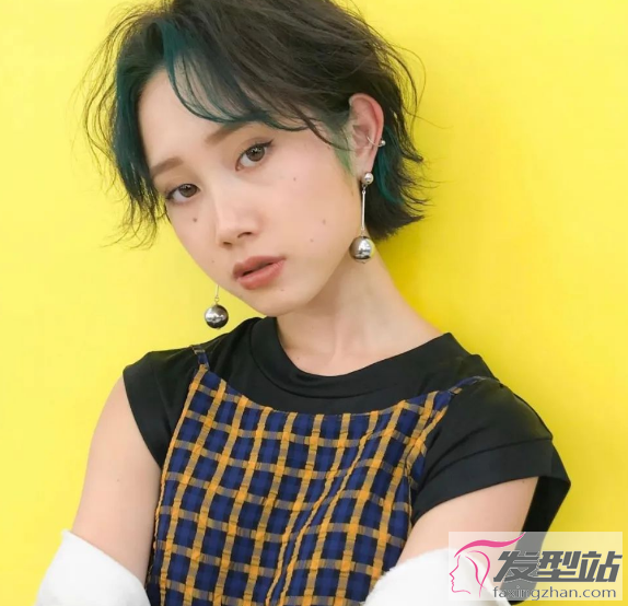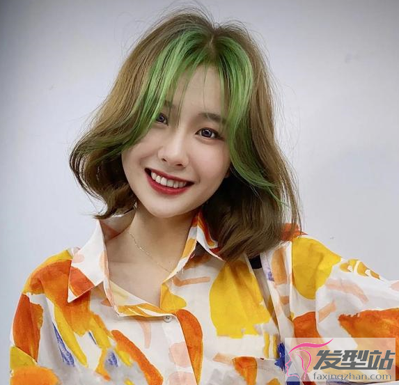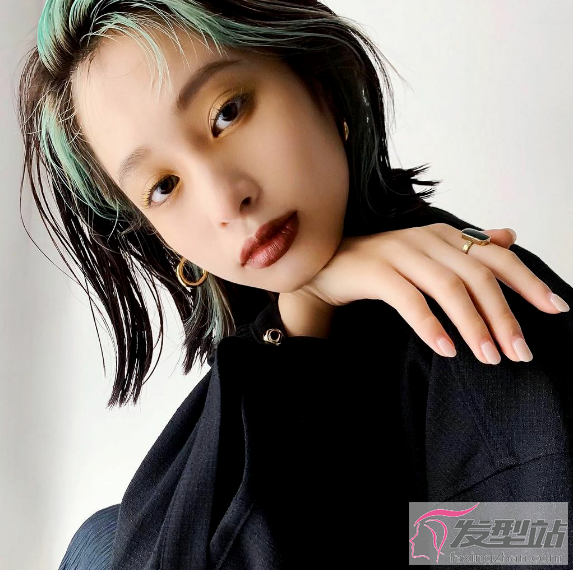 棕色的头发比较百搭衬肤色,加入草绿色的刘海染,这样的发型想要不美都很难。