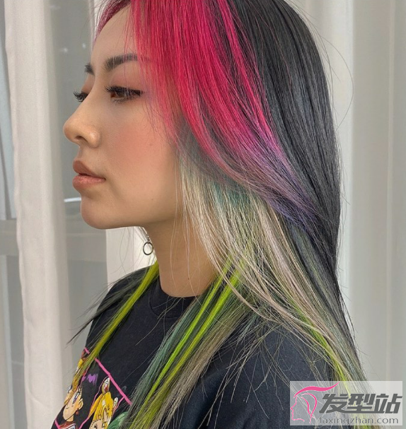 各种染色混染的效果,红、绿、蓝等等,仿佛打翻了颜料盘,这才是时髦精该有的发色造型。
