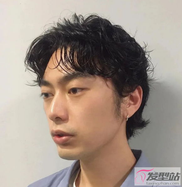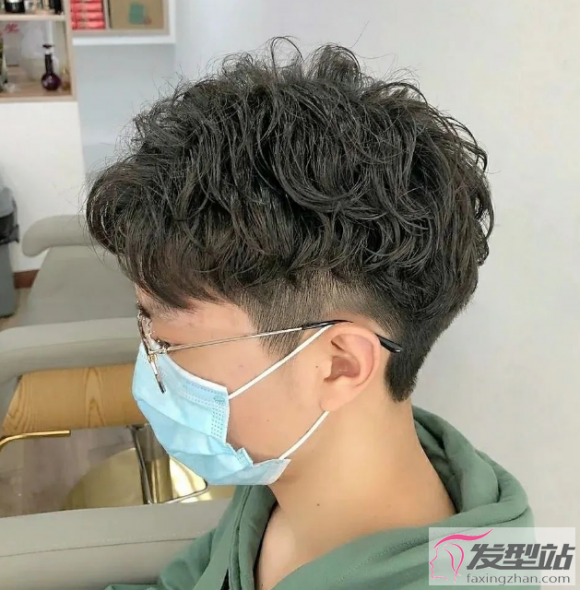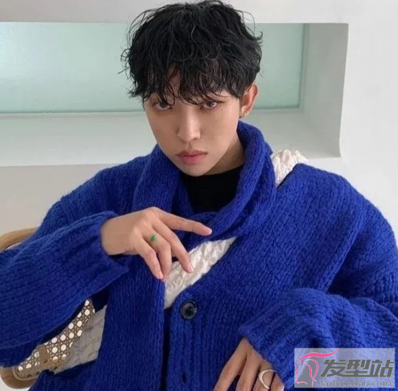 两侧铲青的纹理烫短发发型,黑色的头发变得卷卷的,出门时只要随意抓几下即可。