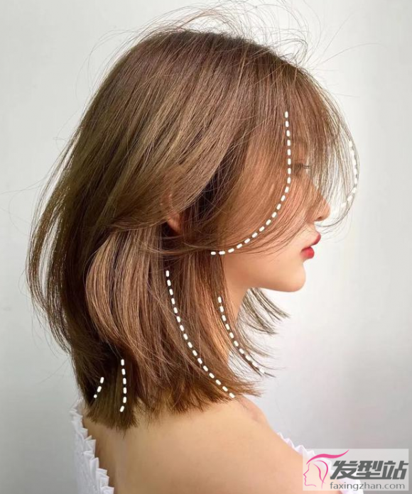 发尾碎剪设计,头发的层次丰富又时尚,加上长过眉毛的齐刘海,瞬间瘦脸,气质飙升。