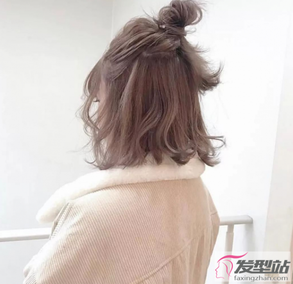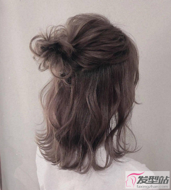 慵懒风的半扎丸子头,发型随性自然,蓬松的丸子头还能让你的发量看起来更多,时尚又个性。