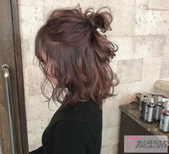 发尾加上烫卷处理的发型显得更加蓬松随性,搭配一个半扎丸子头,瞬间年轻好几岁。